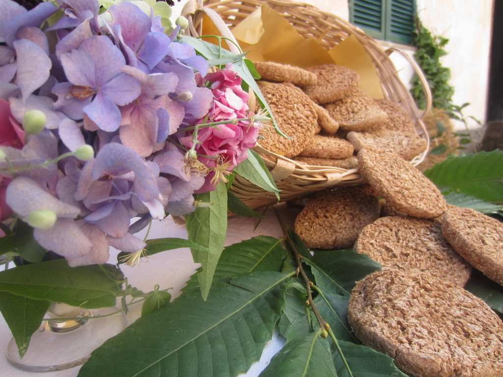 - Mit einem Stück Schnur in Scheiben schneiden, die in einem Backblech angeordnet und im nicht zu heissen Holzofen, für eine Stunde, gebacken werden sollen.