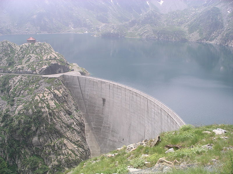 Das Becken Chiotas stattdessen ist auf 1980 Meter Höhe und wird von zwei Dämmen Chiotas und Colle di Laura eingeschlossen. Der Damm Chiotas, mit bogenförmiger Schwerkraft, ist 130 Meter hoch und hat einen Kronenlänge von 230 Metern. Der Damm Colle Laura, kleiner, ist massiv mit geradliniger Schwerkraft . Es hat eine maximale Höhe von 30 Metern, mit einer Kronenlänge von 70 Metern. Dieser beeindruckende Stausee von Enel gebaut im Jahr 1968, markierte das Schicksal des glorreichen Rifugio Genova, mit dem ganzen Gebiet des Gias Monighet für immer unter Wasser getaucht.