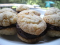 In der Zwischenzeit, schmelzen Sie die Schokolade im Wasserbad oder in der Mikrowelle. Wenn die Kekse bereit sind und die Schokolade abgekühlt, verbreiten Sie etwas Schokolade auf der flachen Seite eines Kekses, dann sorgfältig decken mit einem anderen Keks.